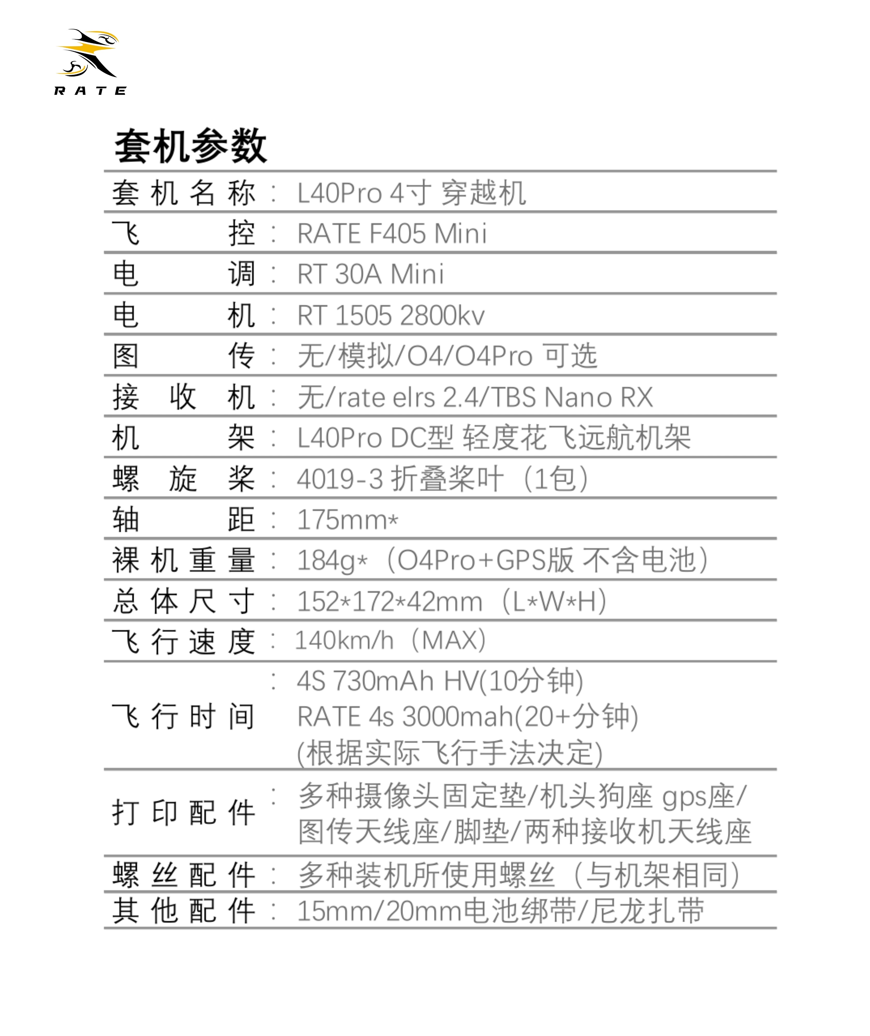 RATE L40 Pro 4inch LR PNP/BNF Camera mount supports O3/O4Pro, Polar, Link